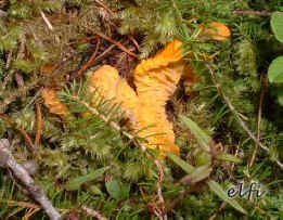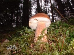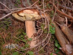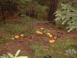 Ich halte Ausschau nach der Lärche mit der Goldröhrlinge eine Wurzelgemeinschaft bilden, denn sie wachsen nur bei dieser, ich kann beim besten Willen ausser Kiefern und Fichten keinen solchen Baum entdecken, sollten die Pilzbücher doch nicht recht haben...? - Glaube doch nicht so etwas elfi, da unten gute 15 Meter weiter stehen Lärchen, bestimmt sechs riesige Bäume!