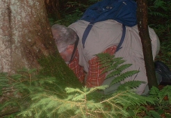 Nach einige Schritten sind wir gezwungen uns recht klein zu machen, denn die Objekte unserer Suche sind nicht nur winzig, sondern haften in den entlegensten Ecken. Harry ist absolut im Vorteil, er hat für solche Fälle immer eine Folie dabei, die Nässe und Kleintieren keine Übergriffe erlaubt.